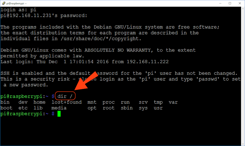 Agora que você já instalou o Raspbian e se conectou utilizando o Putty, vamos aprender os primeiros comandos.