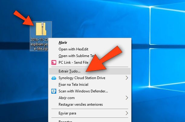 Faça o download (baixe o arquivo) do Raspbian Lite em http://69.174.48.56/2016-11-25-raspbian-jessie-lite.zip e salve no seu Desktop (Área de Trabalho) ou em qualquer outra pasta à sua escolha (lembre-se em qual pasta você salvou!).