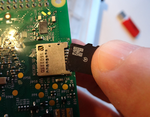 Finalmente remova o microSD fo seu computador e insira-o no slot localizado na parte inferior da Raspberry Pi. A Raspberry deve estar desligada.