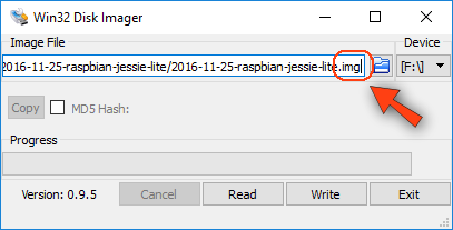 Na janela aberta pelo Win32DiskImager, localize o arquivo do Raspbian que você extraiu no Passo 3 e clique 2 vezes no nome dele.